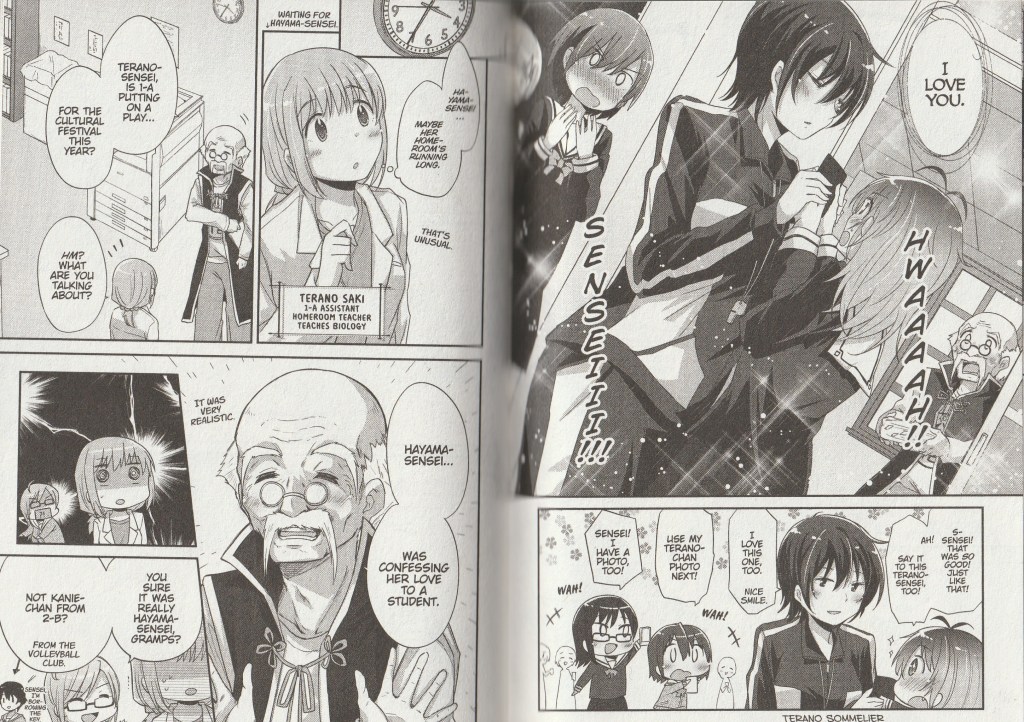- Students pouncing at the opportunity to hear Hayama practice saying “I love you” to photos of Terano on their phones