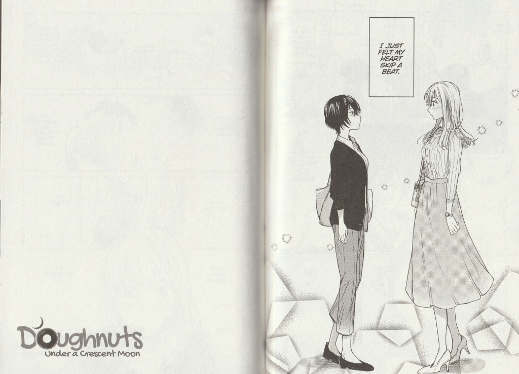 Shio Usui is the genius behind Doughnuts Under a Crescent Moon (and Trying Out Marriage with My Female Friend which is equally cute and adorable), a story of two salarywomen that have a respectful relationship (from a distance) until, one day, that distance is closed. The story is pretty cute, but believably real ~ Imposter Syndrome is a hell of a drug ~ as well as being stunningly illustrated.