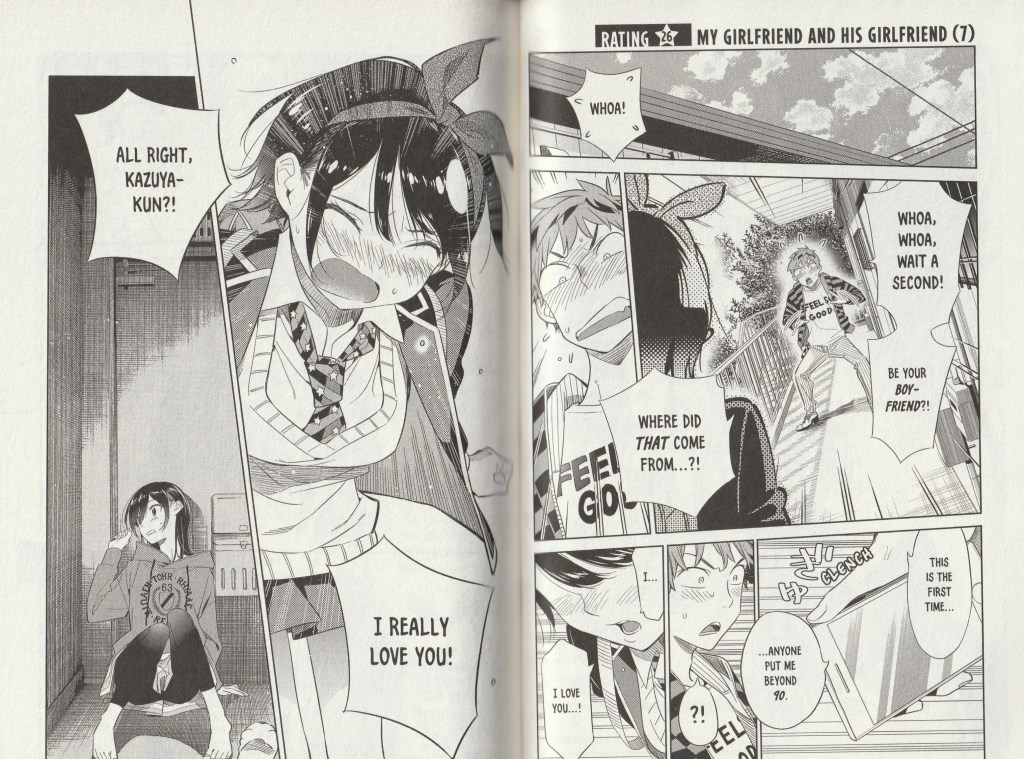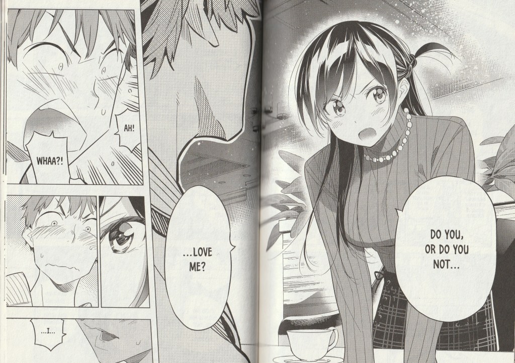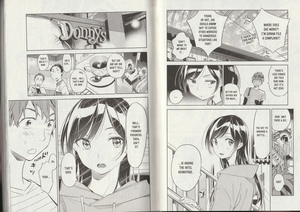 Jumping into the Story: Anyhow, I think there’s an actual Manga here to review… Kazuya and Chizuru start the volume off debriefing from the double-date they were on with Kuri & Ruka and trying to figure out what’s going on with Ruka and the way that she suddenly confessed to being a Rent-A-Girlfriend. Obviously, they over-analyze the heck out of it because they’re both afraid of their respective lies being exposed by her (Kazuya in disappointing his grandmother by Chizuru not being a real girlfriend and Chizuru’s grandmother finding out that she’s working as a Rent-A-Girlfriend).
